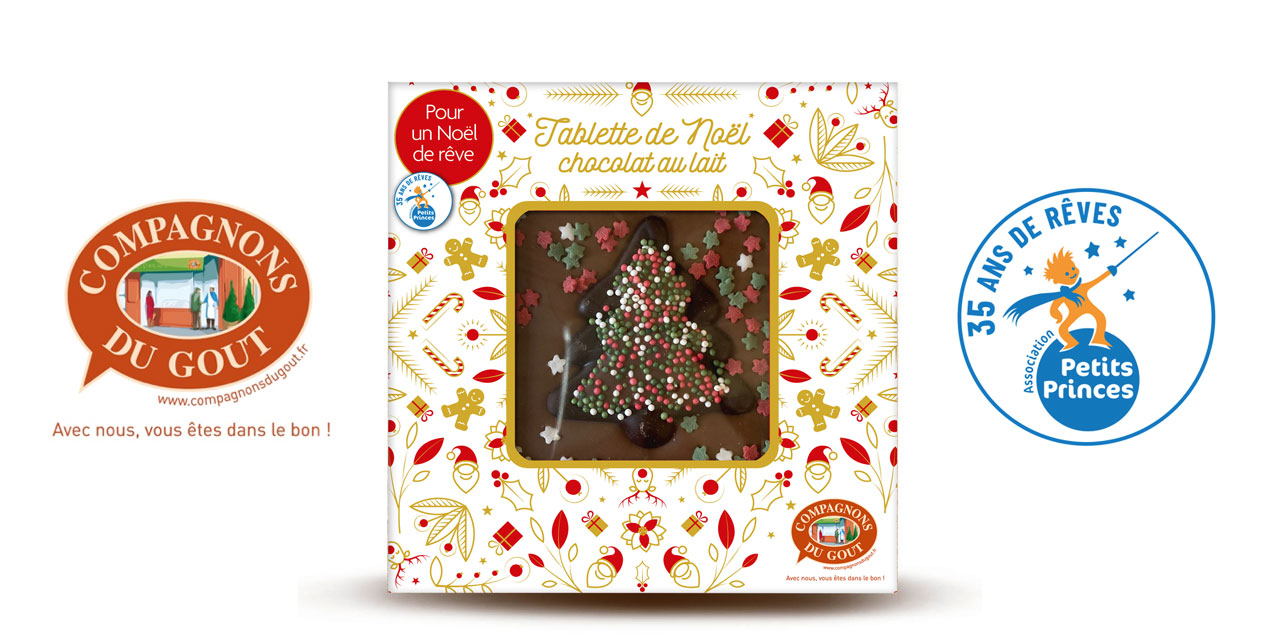 La tablette de Noël chocolat au lait est en vente, dans la limite des stocks disponibles, jusqu’au 24 décembre chez les Compagnons du Goût (liste des points de vente sur le site).