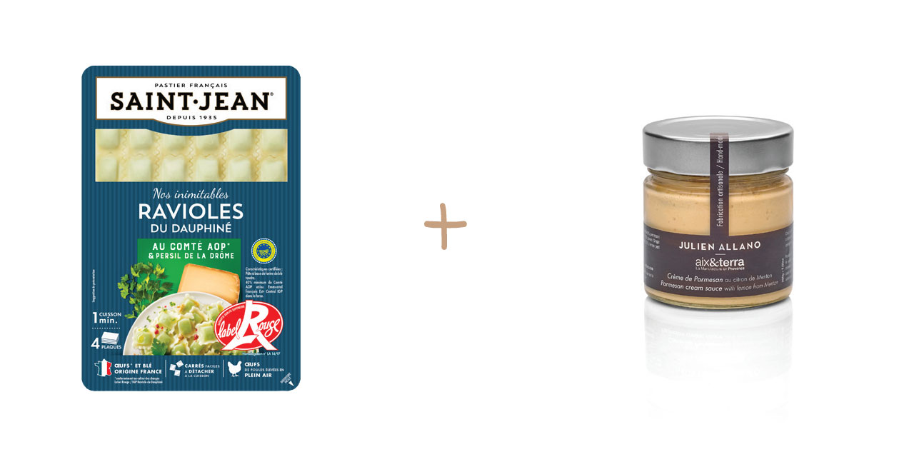 Comme dans cette recette festive, où les ravioles Saint Jean sont sublimées par les produits d’aix&terra : des sauces et des huiles issues de fruits, légumes, aromates et truffes cultivés en Provence, sans colorants ni conservateurs, et cuisinés dans la manufacture artisanale située en Drôme provençale.