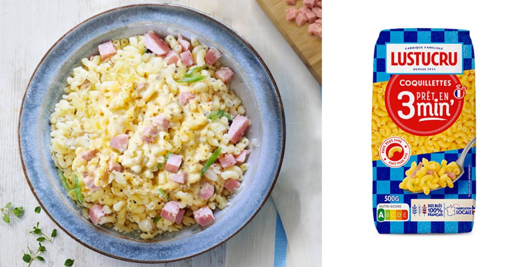 Aujourd’hui, près de 30 ans après leur invention, Lustucru propose donc ses coquillettes, spaghetti torsades, collerettes,… Cuisson 3 min en format 500g, emballage 100% papier réfermable. Des pâtes 100% blé français (récolté et transformé en farine près de Rouen), fabriquées dans les Hauts de France avent d’être vendues au prix conseillé de 1,49 euro le paquet.