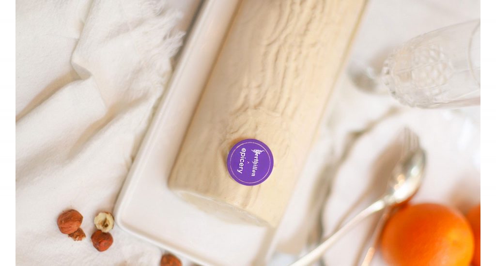 La Maison propose une bûche exclusive, alliant la fraîcheur acidulée de la mandarine de Sicile au croquant gourmand chocolat noisette du Piémont. Un parfait mariage entre crème glacée et sorbet, reflétant à la fois l’esprit traditionnel des desserts de fêtes et une touche moderne dans les saveurs. Pour les palais férus de sensations ! (39 euros)