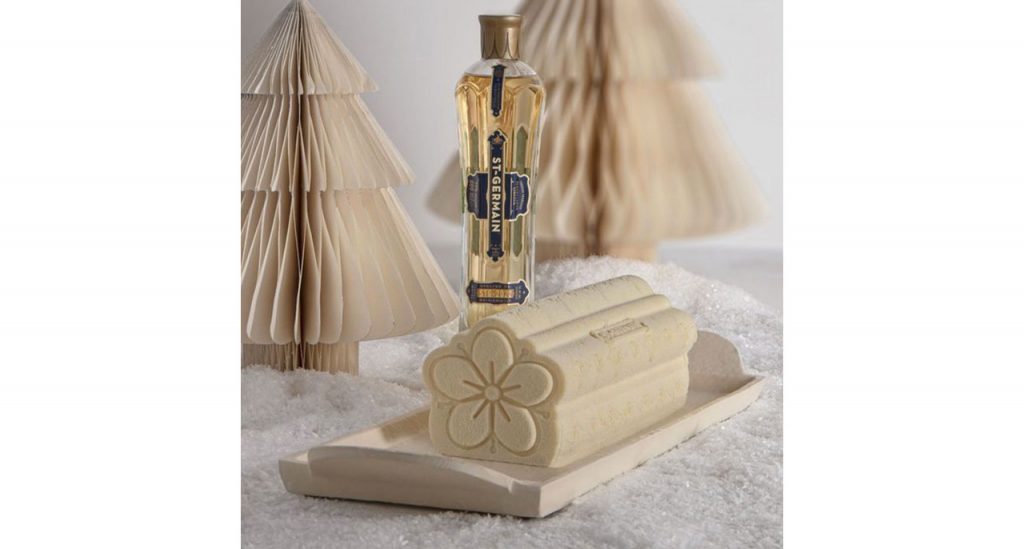Elaborée avec un biscuit baba délicatement imbibé de liqueur St-Germain, une ganache aux amandes, une compotée de poires fraîches et une coque en chocolat blanc floquée velours. Yann Couvreur propose ainsi une création raffinée et moderne unissant subtilement l’essence des deux maisons. Un dessert tout en saveurs ! (69 euros)