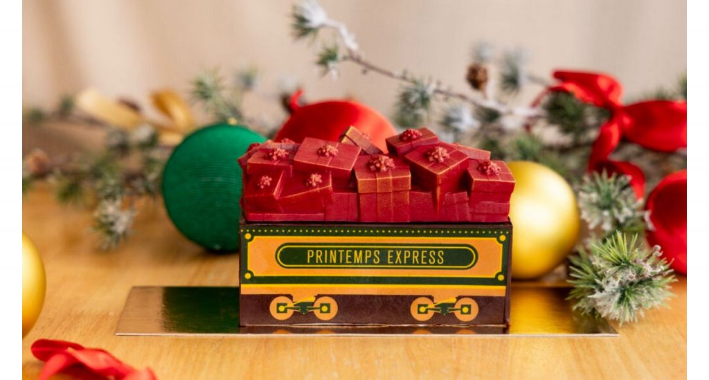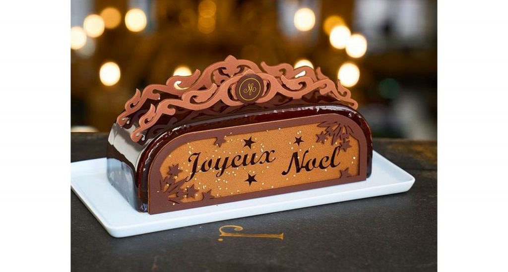 Cette année, le maestro étoilé Guy Martin nous transporte dans un univers de saveurs élégantes et d’un esthétisme raffiné. Élaborée à partir de chocolat noir intense, elle est sublimée par des fruits exotiques, avec une mise à l’honneur de la mangue. Préparez vos papilles, c’est une expérience culinaire inoubliable ! (88 euros) (illustration d’ouverture)