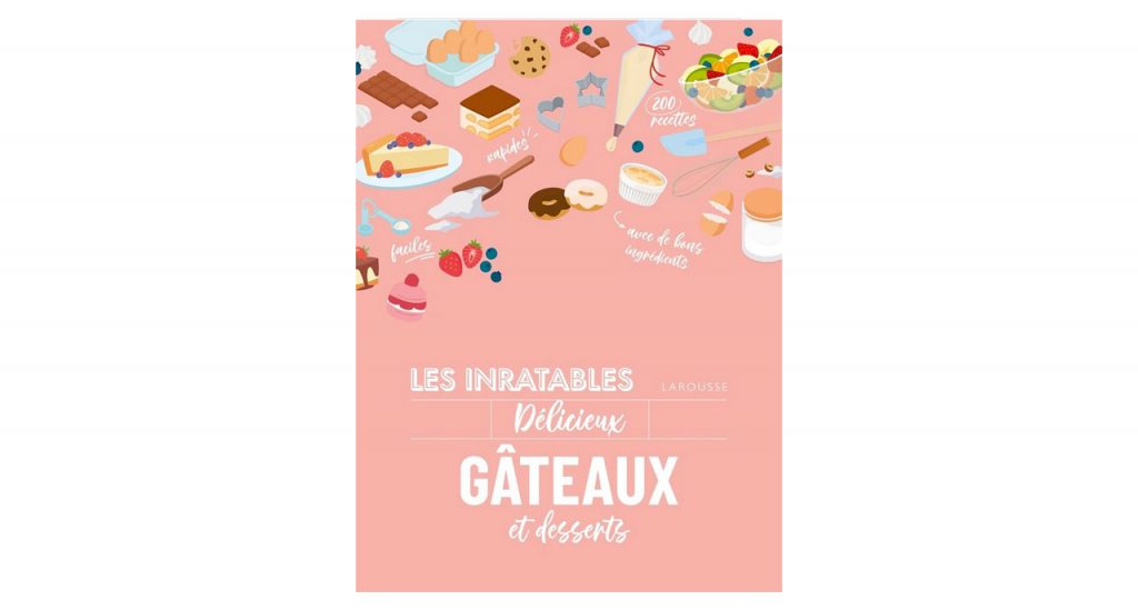 4, 5 ou 6 ingrédients, quelques minutes de préparation et le tour est joué ! 200 desserts inratables et ultra-rapides à réaliser ! Du biscuit de savoie aux profiterolles amandes et chocolat, de la bûche aux marrons au pain d’épices en passanr par le diplomate aux pruneaux ou la charlotte glacé au citron. Pas plus de 6 ingrédients pour limiter les courses. La nouvelle bible des desserts, pour finir vos repas en beauté ! (22,95 euros)