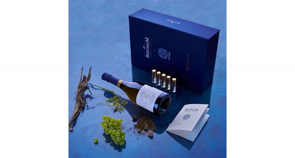 Le coffret « Balade Olfactive » est le fruit d’une collaboration entre Bestheim et la Maison de Parfum strasbourgeoise Serena Galini. En résulte une expérience en cinq temps, une délicate séquence olfactive qui nous transporte vers cette terre qui a donné vie à ces raisins d’exception. Une expérience sensorielle ! (89 euros)