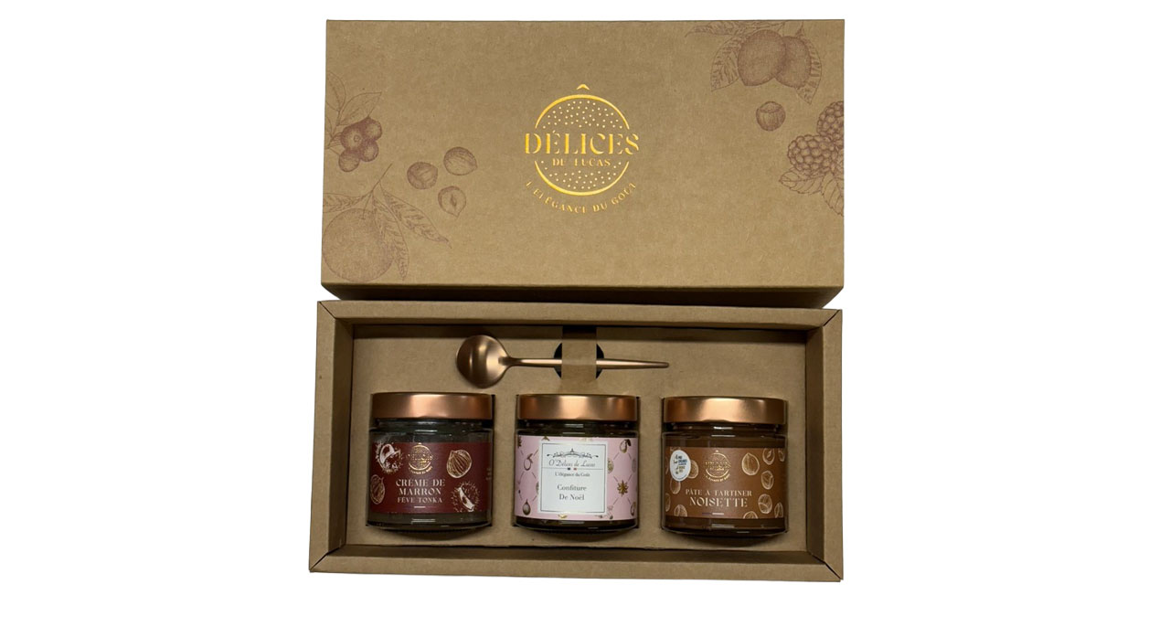 O’Délices de Lucas, artisan confiturier membre du Collège Culinaire de France, propose une nouveauté originale : le coffret de Noël personnalisé à composer soi-même. A choisir ses pots préférés : Fraise Mara des bois, Myrtille sauvage, Fève Tonka, Framboise-Citron,Exotique, Jasmin et fleur d’oranger… (A partir de 7 euros les 230g)