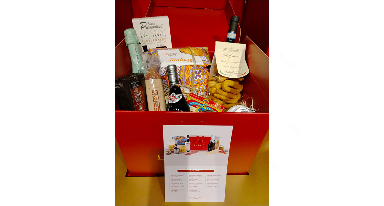 De nombreux paniers garnis sucré-salé réunient le meilleur de l’artisanat italien se trouvent au temple de la péninsule Eataly à Paris. Panettone, Prosecco, salami, grissinis artisanales à la truffe noire, Parmigiano Reggiano affiné 24 mois…Iidéale à partager pendant les fêtes ou à offrir en cadeau. Buona degustazione ! (99,90 euros)