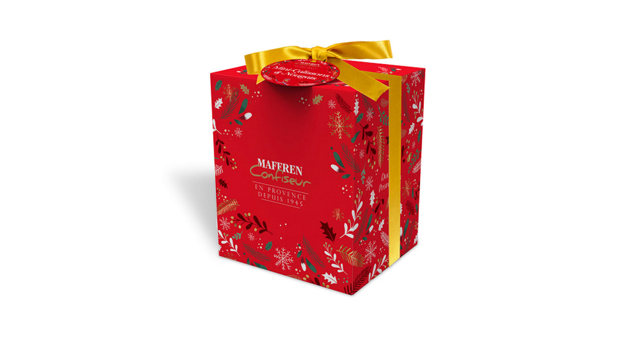 Ce coffret festif « Nougats et Calissous sous flowpack » est le cadeau parfait pour les amateurs de douceurs sucrées haut de gamme. Des mini calissons et dominos de nougat, emblèmes du patrimoine gourmand régional, perpétuent la tradition avec raffinement. Les petits et les grands enfants vont adorés, trop bon ! (17,50 euros)
