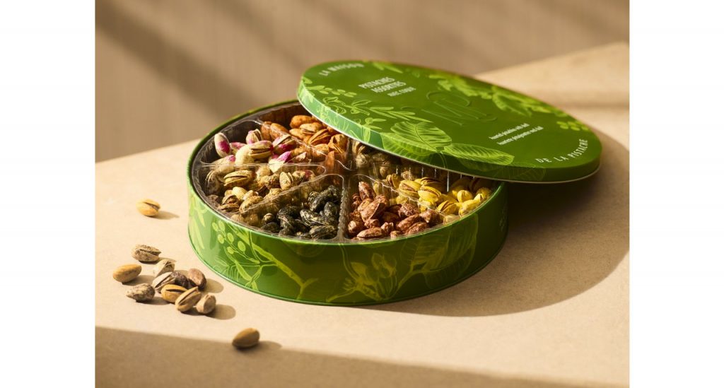 La Maison de la Pistache dévoile ses deux coffrets en métal réunissant un assortiment de 4 ou 8 variétés en coque. Pensés comme une découverte des grandes origines pistachières, ces assortiments invitent à un voyage gustatif entre Méditerranée et Perse. Ce fruit millénaire se déguste avec plaisir à l’apéritif. (19,90 euros les 4 variétés)