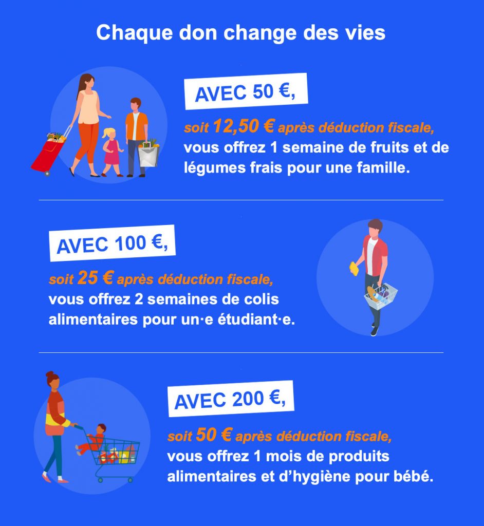 Cette collecte digitale, complémentaire à celle en magasin, permet d’apporter une aide alimentaire variée, équilibrée et locale et également de recueillir des produits d’hygiène, répondant aux besoins spécifiques des 79 Banques Alimentaires du réseau