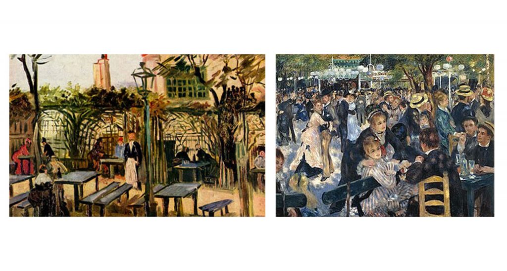 En 1890, La Bonne Franquette, institution de la Butte voit défiler de nombreux artistes, Degas, Cézanne, Toulouse-Lautrec, Monet, Sisley et Pissarro ou encore Zola. Van Gogh y peignit son célèbre tableau « La Guinguette », de mêmei que Renoir sa fameuse toile « Le Bal du Moulin de la Galette » sur le même lieu.