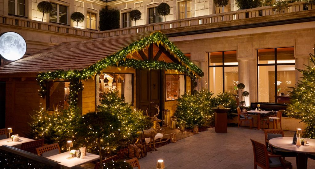 Niché dans la cour intérieure du Park Hyatt Paris-Vendôme, le Chalet du Park revient pour une nouvelle saison, plus cosy et confortable que jamais. Pour savourer un déjeuner ou un dîner privé, dans une ambiance chaleureuse et feutrée, pour nous et jusqu’à neuf de nos proches. Le Chef étoilé Jean-François Rouquette nous propose une expérience culinaire inoubliable, avec notamment sa fameuse raclette montagnarde aux trois fromages, accompagnée de charcuteries artisanales de la Maison Baud et de pommes grenailles fondantes. À partir de 210 euros par personne, selon les dates et conditions.