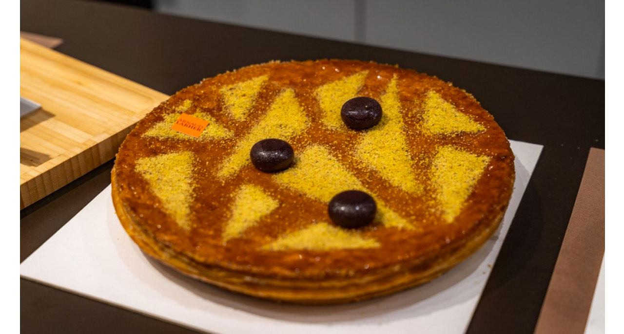 Pour l’Épiphanie 2026, le Meilleur Ouvrier de France Arnaud Larher dévoile sa galette Chloé. Son feuilletage révèle à la dégustation un cœur de crème à la frangipane mélangée à la pistache fondante accompagnée de griottes cerises. En ce début d’année, offrez-vous un moment de gourmandise en famille et fondez de plaisir. (64 euros)