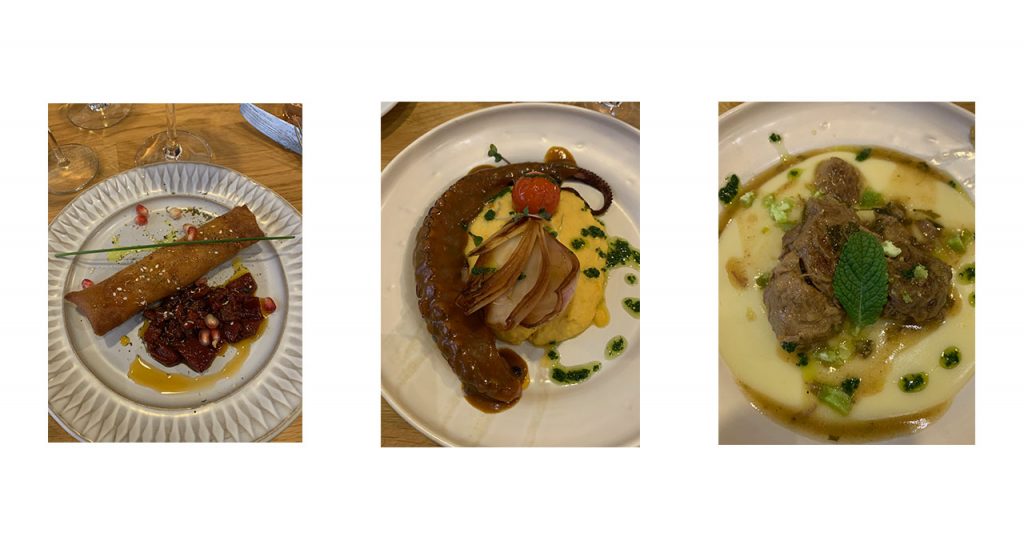 Nous avons pu tester l’adresse à l’occasion de la mise en avant de l’offre touristique et gourmande de l’ile de Naxos. Nous avons alors pu notamment apprécier les Flogérés croustillantes à la Graviera de Naxos ( flûtes de feuille de brick garnie de graviera (fromage) de Naxos, sauge fraîche et muscade en entrée. En plat un excellent Poulpe Stifado à la fava de Naxos, soit du poulpe tendre mijoté au vin rouge, petits oignons, laurier, cannelle et poivre ! Sans oublier l’Arnaki Lémonato, une purée de pommes de terre et de l’agneau citronné. Le dessert quant à lui nous a charmé en douceur avec une Crème à la vanille et à l’orange confite, crumble d’amygdalota de Naxos (biscuits aux amandes).