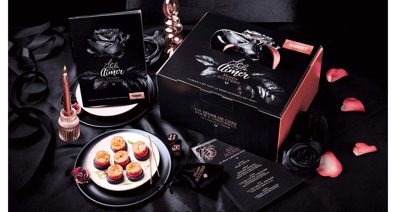 Pour les amoureux qui n’aiment pas aller au restaurant mais qui souhaitent fêter la Saint-Valentin les yeux dans les yeux seuls au monde Thiriet propose sa Boîte à Aimer. De l’apéritf au dessert, des petites surprises, jeux secrets, atelier créatif, playliste musicale et romantique, bougeoirs et chandelles inclus. Pimentez la soirée et osez ! (39,99 euros)