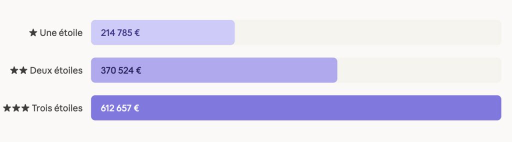 Un restaurant une étoile génère en moyenne 214 785 € par an grâce à ses coffrets. Passez à deux étoiles, le chiffre monte à 370 524 €. Et pour les rares élus des trois étoiles ? 612 657 € en moyenne — soit 3,6 fois plus qu’un restaurant lambda. La progression n’est pas linéaire, elle s’emballe. Et par rapport à 2024, les établissements une étoile ont même enregistré une hausse de 20 %, les deux étoiles de 11 %. Même les trois étoiles, segment par nature très concentré (15 établissements seulement dans l’étude), consolident leur position dominante.