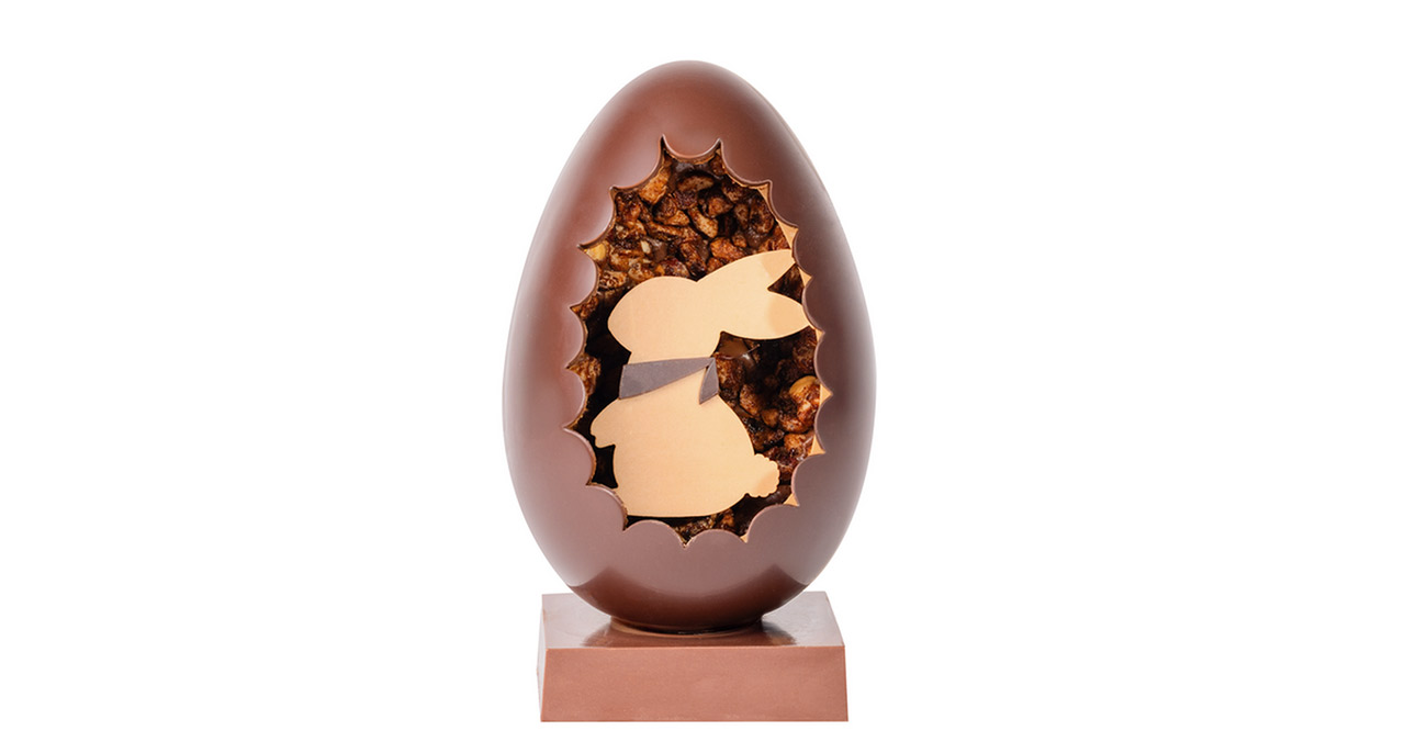 Arnaud Ragot, Maître Chocolatier nourrit une passion pour le chocolat, qu’il transmet à travers ses créations confectionnées dans ses ateliers. L’oeuf de Pâques facetté émerveillera petits et grands avec sa coque finement sculptée au chocolat noir et ses éclats de noisettes. Un bonheur gourmand ! (19,99 euros les 140g)