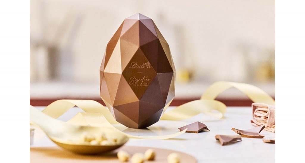 La marque dévoile un entremets en forme d’oeuf à partager en famille. Composé d’une base croustillante au cacao et noix de pécan torréfiées, d’une mousse noisette fondante et d’une fine plaque de chocolat blanc croquante. Ce dessert joue sur les textures pour un mariage aussi surprenant qu’addictif. (14,90 euros les 340g)