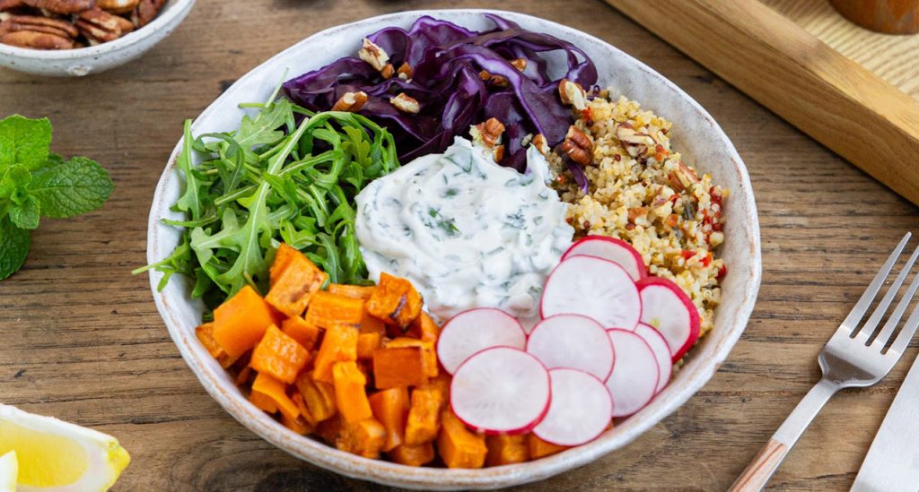 Recette du Bowl de légumes au boulgour et sauce Skyr Isigny Sainte-Mère