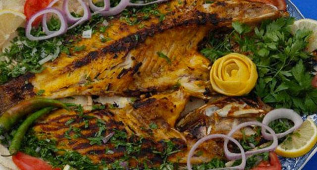 Plus singulier, le mashuai est considéré comme un plat de luxe : du poisson — souvent du safi (poisson lapin) ou de la daurade, rôti entier et servi sur un lit de riz au citron. La combinaison riz parfumé-poisson entier peut sembler austère, mais l’équilibre des saveurs est remarquable. C’est le genre de plat qu’on mange en silence, concentré, et qu’on regrette longtemps après.