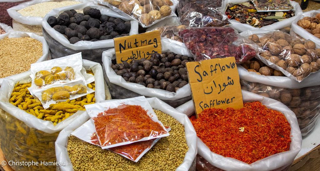 De l’Inde sont venues les épices (le baharat omanais, mélange d’épices maison, rappelle certains masalas), les techniques de marinade et la passion du riz parfumé. De Perse sont venus le safran, l’eau de rose et le loomi. D’Afrique de l’Est est revenue la noix de coco, le tamarin, et certaines préparations de poisson. La cuisine omanaise est ainsi une carte géographique comestible, chaque plat raconte un voyage.